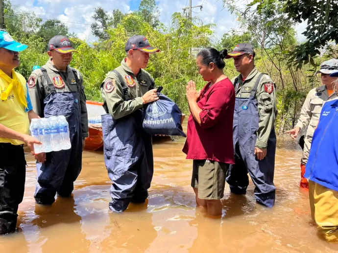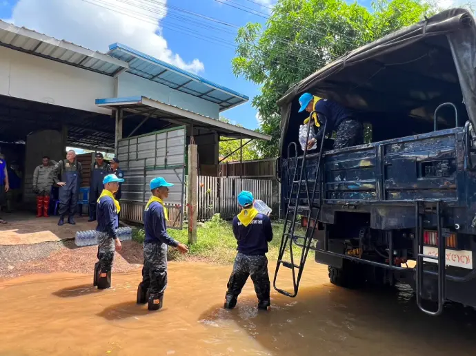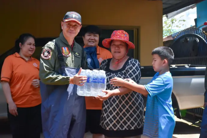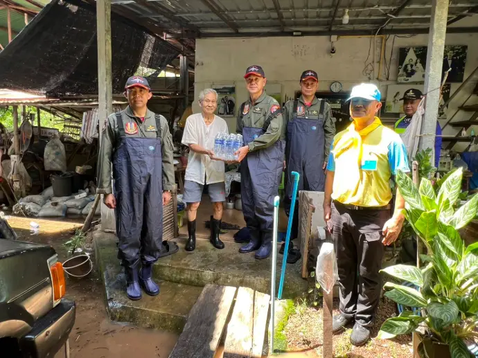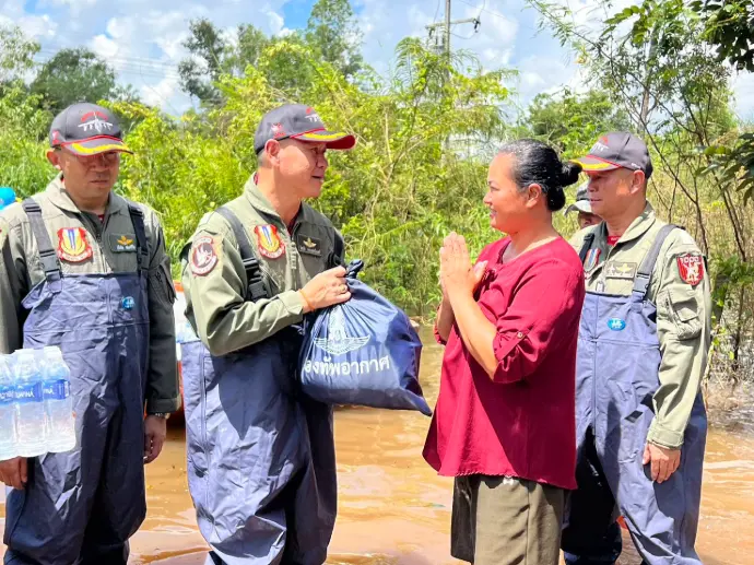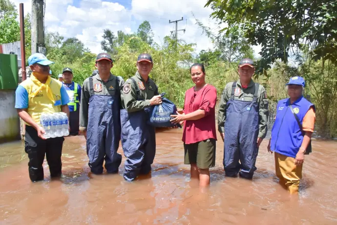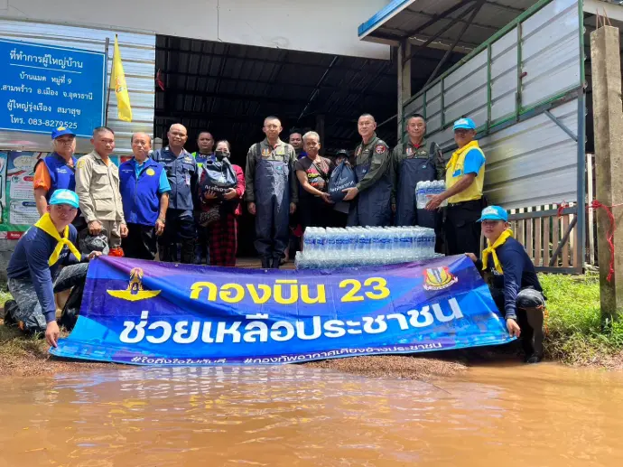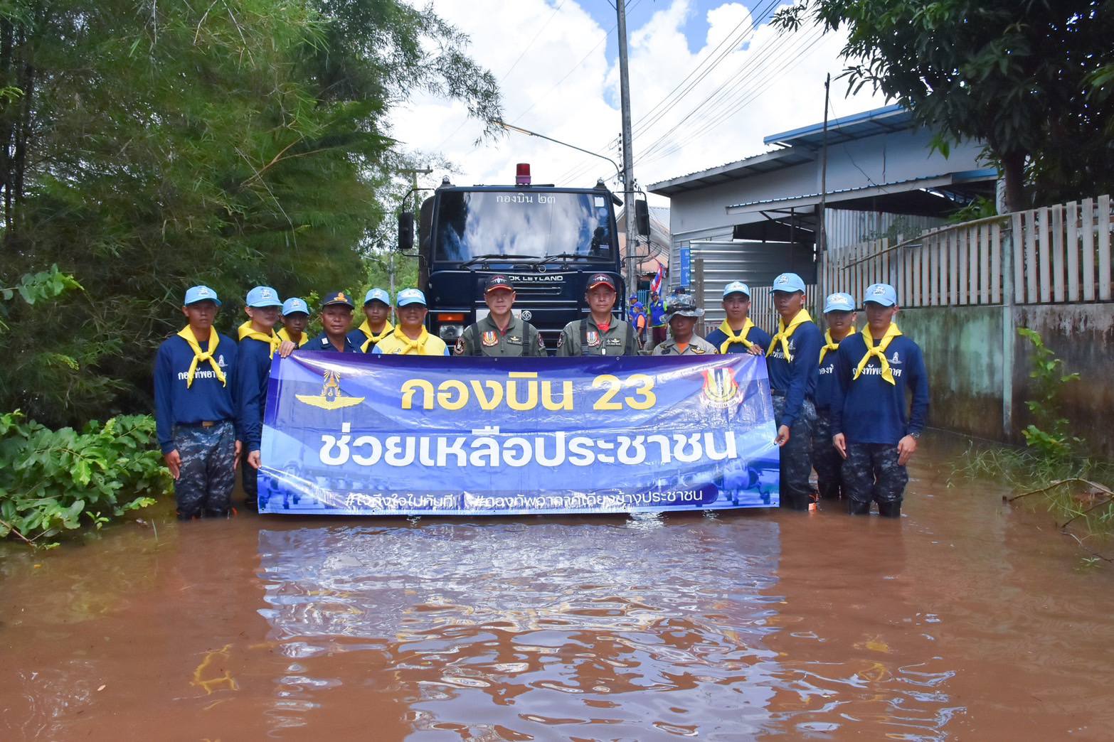เมื่อวันที่ ๒ ตุลาคม ๒๕๖๘ นาวาอากาศเอก วิทวัส ครองธานินทร์ ผู้บังคับการกองบิน ๒๓ ในฐานะ ผู้อำนวยการศูนย์บรรเทาสาธารณภัยกองบิน ๒๓ พร้อมด้วย รองผู้บังคับการกองบิน ๒๓ และเสนาธิการกองบิน ๒๓ นำกำลังพลจิตอาสาพระราชทาน ข้าราชการ และทหารกองประจำการ กองบิน ๒๓ เข้าช่วยเหลือพี่น้องประชาชนผู้ประสบอุทกภัย ในพื้นที่ตำบลสามพร้าว ซึ่งได้รับความเดือดร้อนรวมประมาณกว่า ๑๒๐ ครัวเรือน เนื่องจากผลกระทบจากพายุดีเปรสชัน “บัวลอย” รวมถึงการปรับเพิ่มการระบายน้ำของอ่างเก็บน้ำที่สำคัญหลายแห่ง ทำให้น้ำเข้าท่วมพื้นที่การเกษตรและบ้านเรือนของประชาชนในหลายพื้นที่ โอกาสนี้ผู้บังคับการกองบิน ๒๓ และคณะได้ตรวจเยี่ยมพบปะพูดคุยให้กำลังใจ และมอบน้ำดื่มให้กับประชาชนที่พักอาศัย ณ ศูนย์พักพิงชั่วคราวเพื่อช่วยเหลือผู้ประสบอุทกภัยตำบลสามพร้าว และเดินทางไปมอบถุงยังชีพและน้ำดื่มให้กับพี่น้องประชาชนที่ประสบอุทกภัย จำนวน ๖๒ ครัวเรือน ณ บ้านแมด หมู่ที่ ๙ ตำบลสามพร้าว อำเภอเมือง จังหวัดอุดรธานี