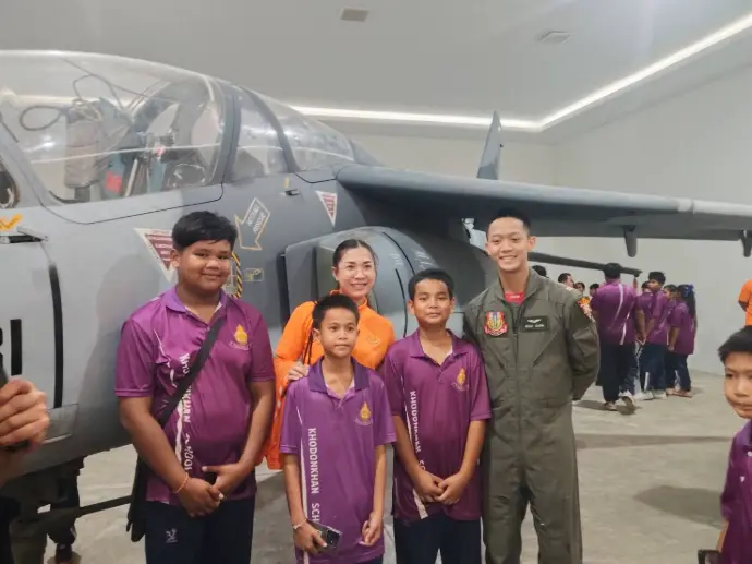 กองบิน ๒๓ ให้การต้อนรับ คณะครูและนักเรียน โรงเรียนบ้านค้อดอนแคน ตำบลค้อใหญ่ อำเภอกู่แก้ว จังหวัดอุดรธานี เข้าเยี่ยมชมกิจการ