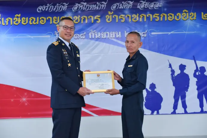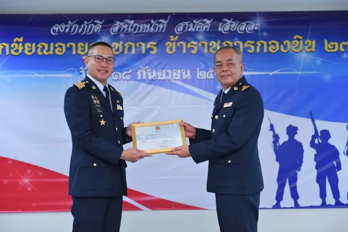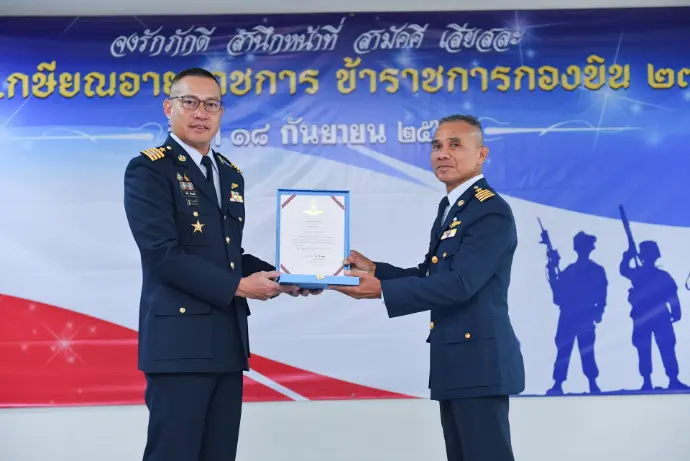 เมื่อวันที่ ๑๘ กันยายน ๒๕๖๘ นาวาอากาศเอก นทัย เมืองมณี ผู้บังคับการกองบิน ๒๓ พร้อมด้วย ผู้บังคับบัญชา หัวหน้าหน่วยขึ้นตรง ข้าราชการ ลูกจ้าง และพนักงานราชการ กองบิน ๒๓ และครอบครัว ร่วม แสดงความขอบคุณในความเสียสละ ในการทำงานเพื่อกองทัพอากาศ และปกป้องพี่น้องประชาชน สำหรับ พี่ๆ ข้าราชการ และลูกจ้าง สังกัด กองบิน ๒๓ ที่ได้ทุ่มเทกำลังกายกำลังใจ ที่มีส่วนช่วยขับเคลื่อนองค์กรให้ก้าวหน้าสู่เป้าหมายที่วางไว้ จนครบวาระเกษียณอายุราชการ ประจำปี ๒๕๖๘ โดยในโอกาสนี้ ได้มีการมอบประกาศนียบัตร ให้แก่ผู้เกษียณอายุทุกท่าน ณ อาคารกิจกรรม กองบิน ๒๓ จังหวัดอุดรธานี