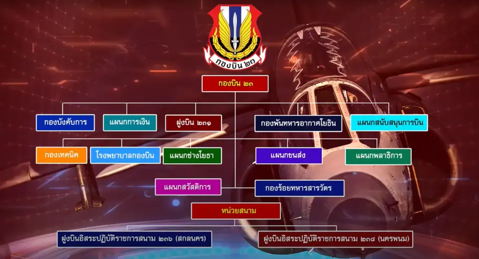 การแบ่งส่วนราชการและหน้าที่ กองบิน ๒๓ แบ่งส่วนราชการออกเป็นดังนี้