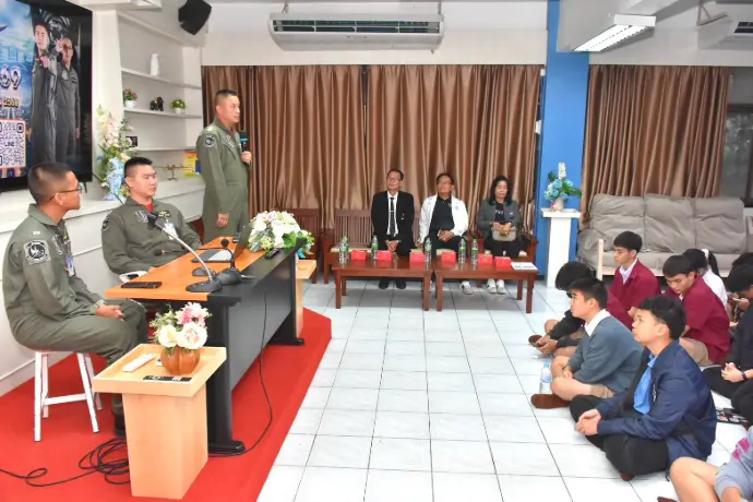 นาวาอากาศเอก วิทวัส ครองธานินทร์ ผู้บังคับการกองบิน ๒๓ มอบหมายให้ นาวาอากาศเอก รักพงศ์ เถื่อนนาดี รองผู้บังคับการกองบิน ๒๓ พร้อมด้วย พี่ๆ นักบิน และทหารอากาศจากกองบิน ๒๓ อุดรธานี เยี่ยมเยียนน้องๆ ขอนแก่น พร้อมแนะแนวทางการรับสมัครสอบโครงการช้างเผือก ประจำปี ๒๕๖๙ ให้กับนักเรียนมัธยมศึกษาชั้นปีที่ ๔ - ๕ โรงเรียนขอนแก่นวิทยายน จังหวัดขอนแก่น เพื่อได้มีโอกาสเข้ามารับราชการเป็นทหารอากาศ เป็นนักบินของกองทัพอากาศโดยได้รับเกียรติจาก นายบุญเหลือ ทองอ่อน ผู้อำนวยการโรงเรียนขอนแก่นวิทยายน ให้การต้อนรับคณะ สำหรับ โครงการช้างเผือก ประจำปี ๒๕๖๙ เปิดรับสมัครตั้งแต่ ๒๘ ตุลาคม - ๒๗ พฤศจิกายน ๒๕๖๘ สามารถเข้าไปดูรายละเอียดการรับสมัครได้ที่ QR line การรับสมัคร หรือที่ @nkrafa-admission