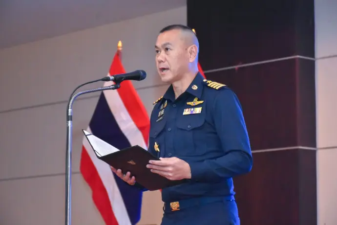 นาวาอากาศเอก วิทวัส ครองธานินทร์ ผู้บังคับการกองบิน ๒๓ เป็นประธานพิธีฟังสาร